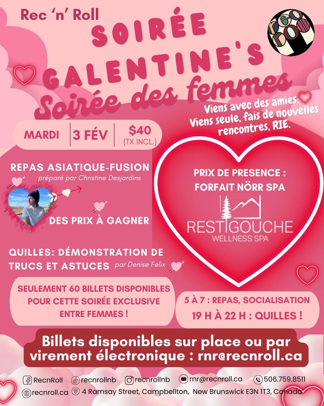 GALENTINE'S LADIES NIGHT! MEAL, SOCIAL, LAUGHS, PRIZES, BOWLING! TICKETS $40 CLICK!